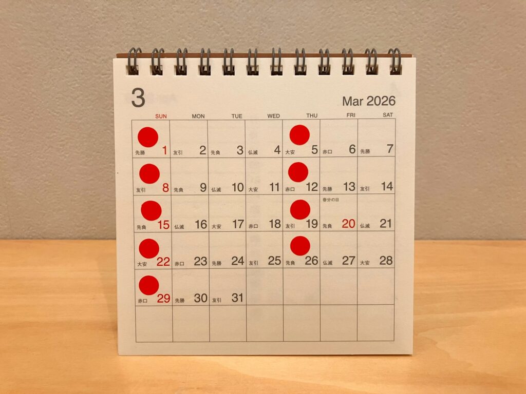 カレンダーの赤丸がお休みをいただいております。